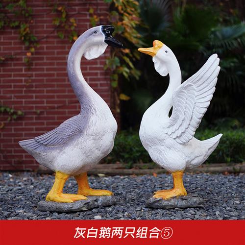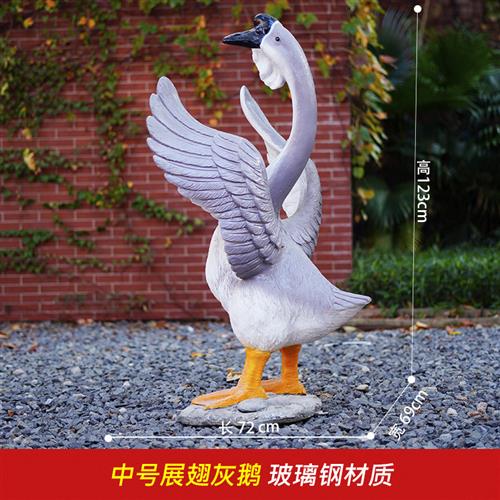 大灰白鹅摆件花园庭院子装饰玻璃钢树脂模型雕塑假狮头鹅仿真店铺
