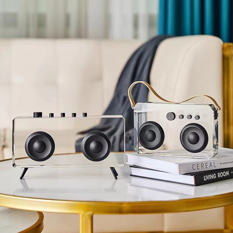 现代轻奢录音机收音机模型水晶艺术摆件样板间客厅玄关家居装饰品