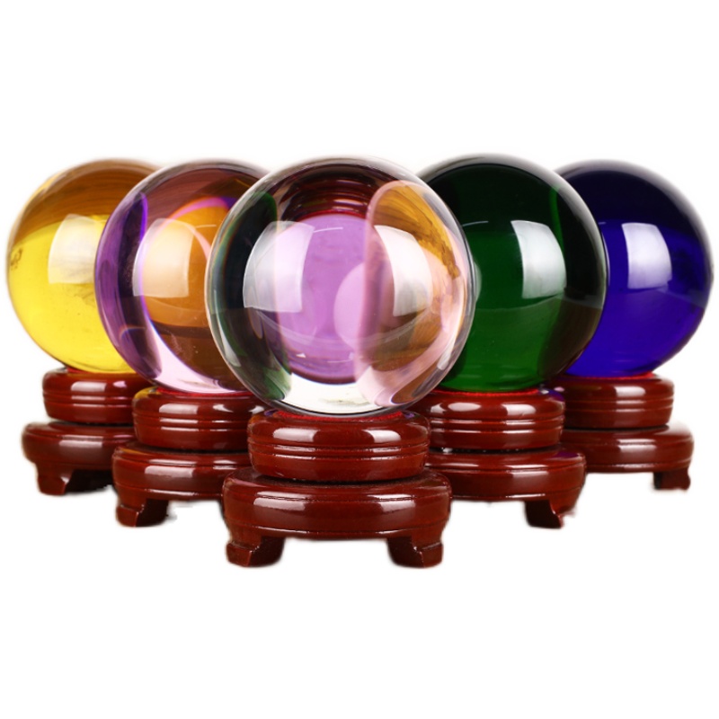 速发粉色球蓝紫白色黄水晶球摆件玻璃绿招财办公室开业装饰品家居