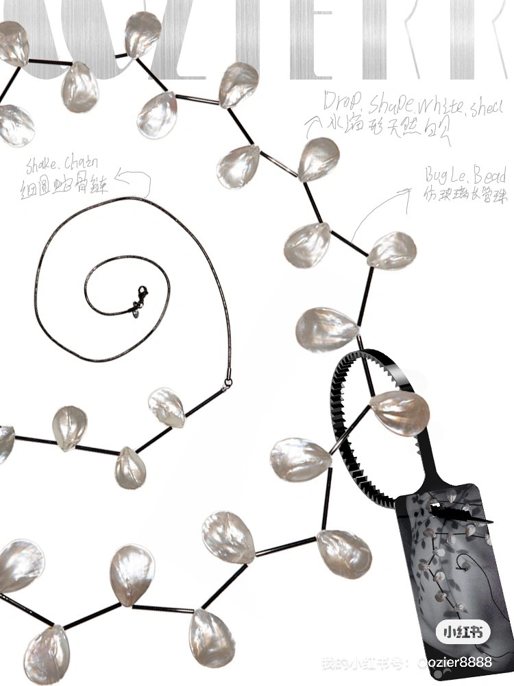 oozierr 黑白拟态叶影身体链 小众氛围感高级花腰链