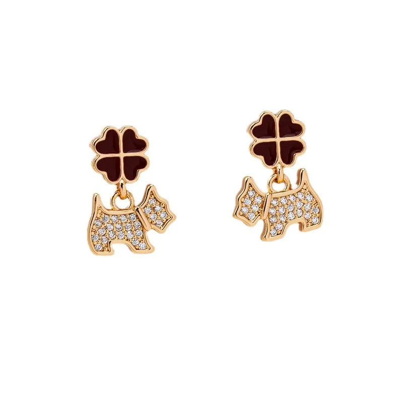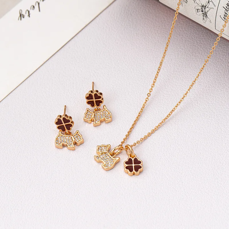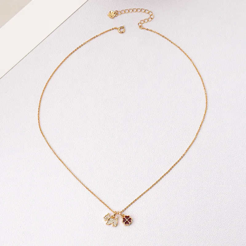 四叶草项链女可爱小狗玫瑰金色高级感法式优雅满钻滴釉幸运草颈链