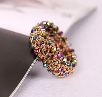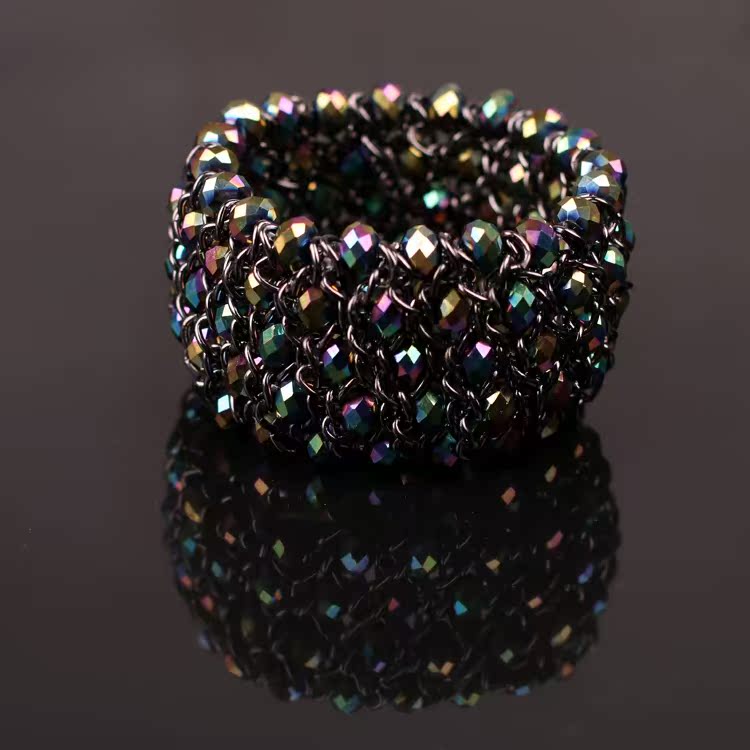 韩国时尚设计 水晶宝石手镯手链女夸张宽手饰气质欧美百搭配饰品