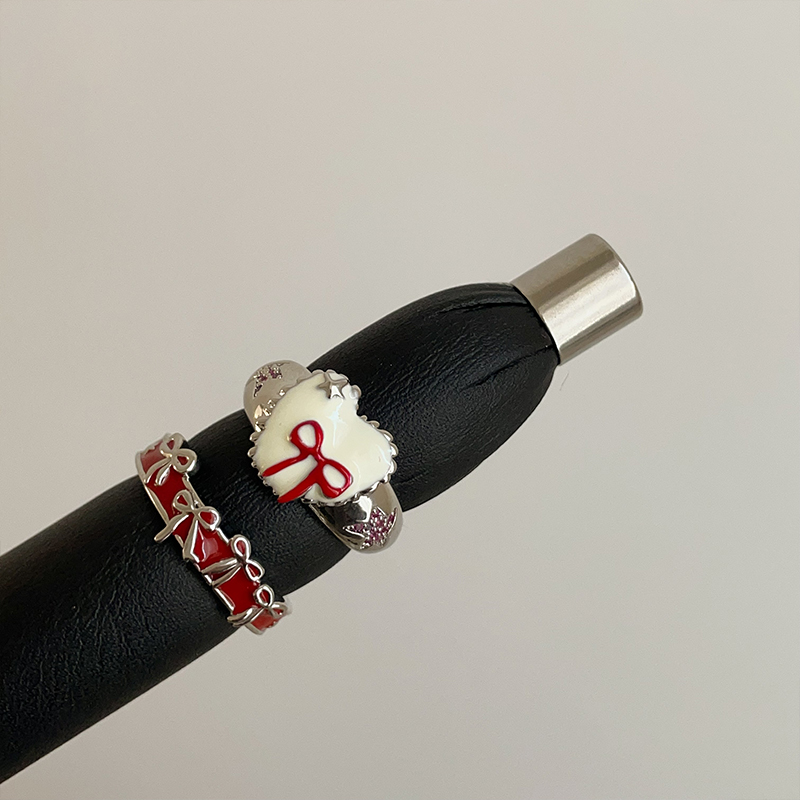 甜美温柔滴油爱心蝴蝶结开口戒指女小众气质优雅通勤百搭指环戒子