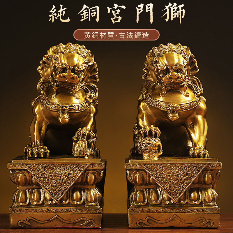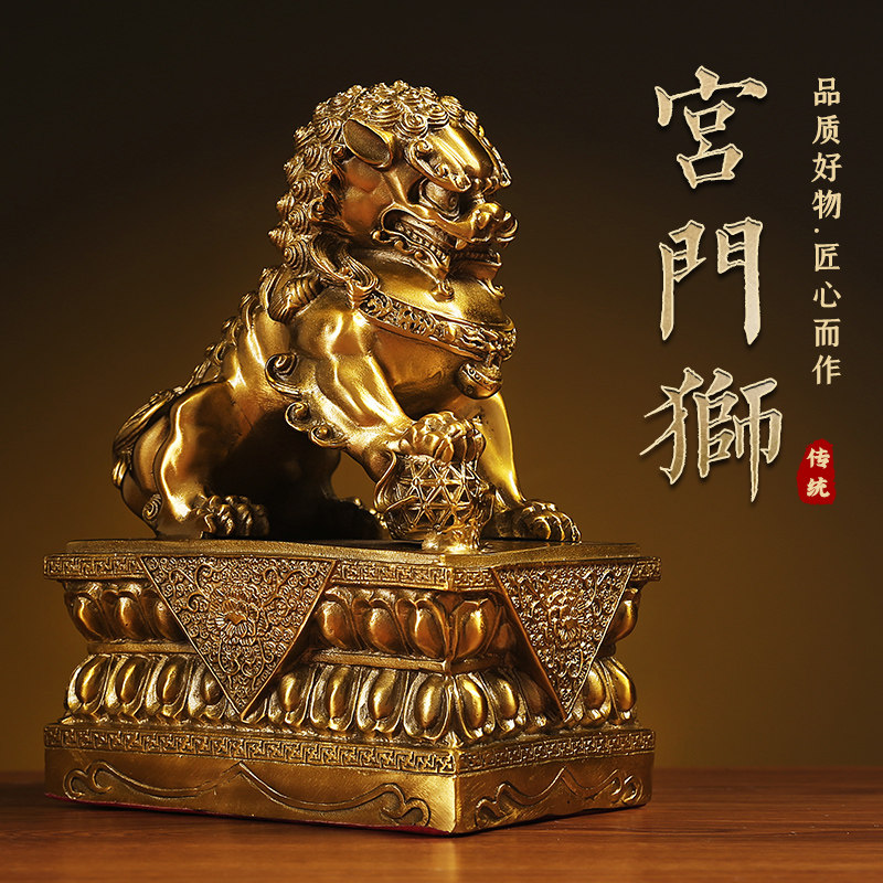 铜狮子摆件一对特大号宫门狮办公室家用入户门口北京狮故宫狮摆饰