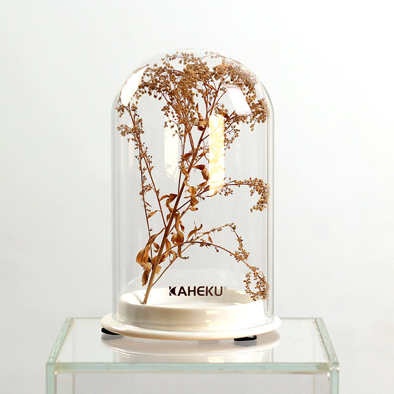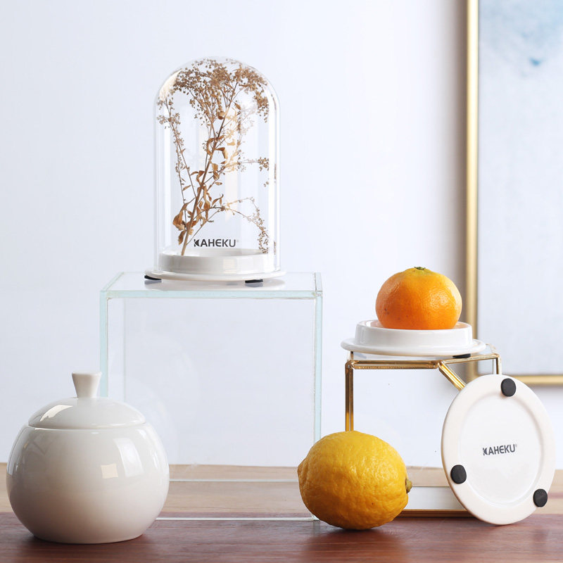 kaheku现代简约白色陶瓷底座透明玻璃罩手办蛋糕手工艺品装饰摆件