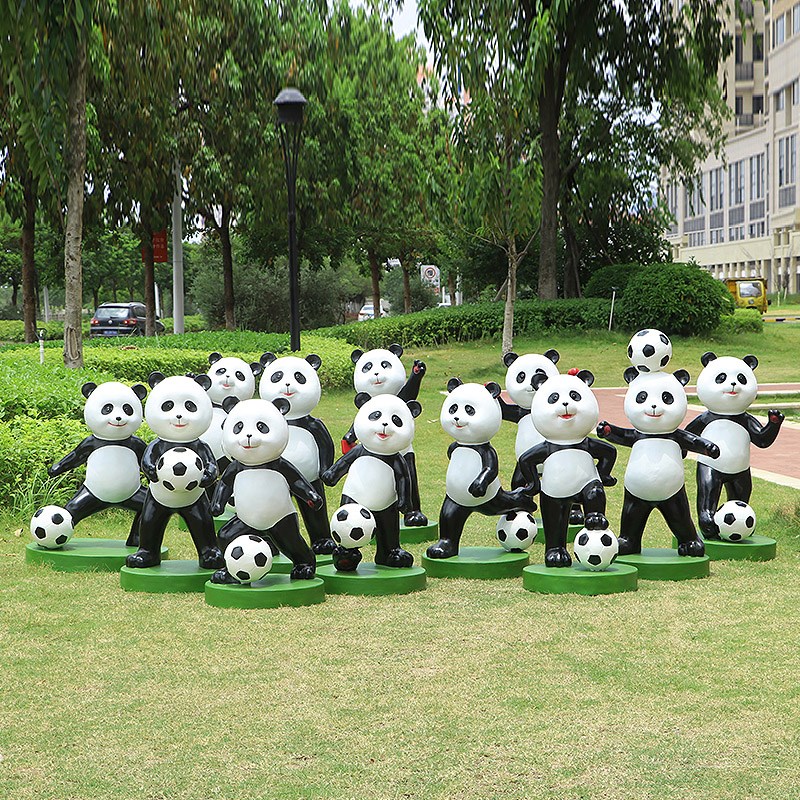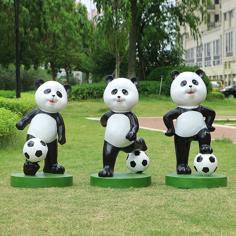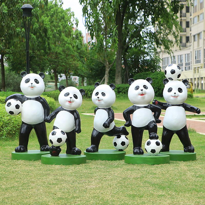 户外卡通足球熊猫玻璃钢动物雕塑庭院别墅小O区装饰品园林景观摆