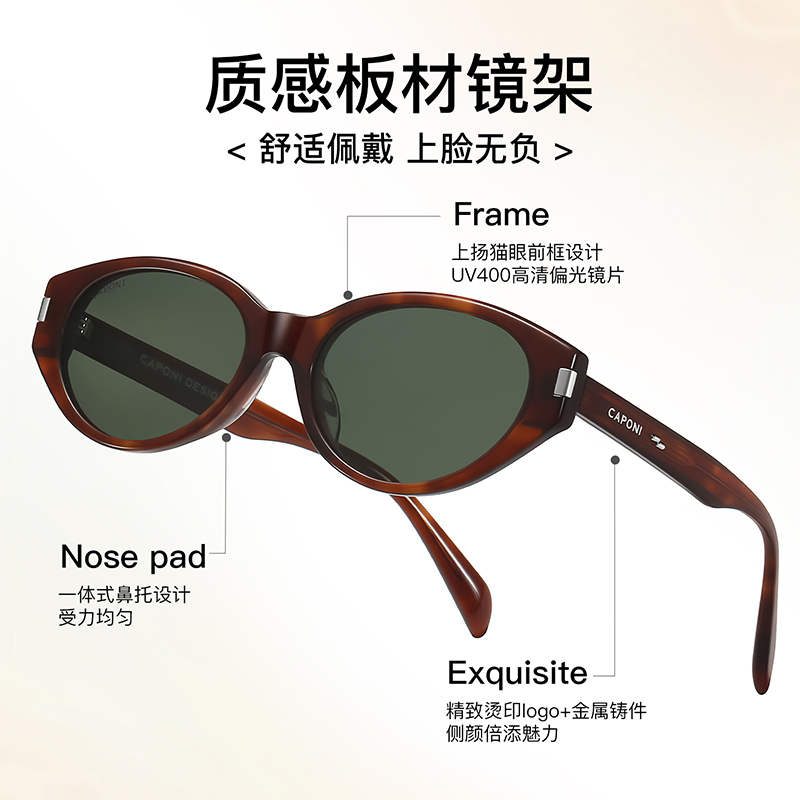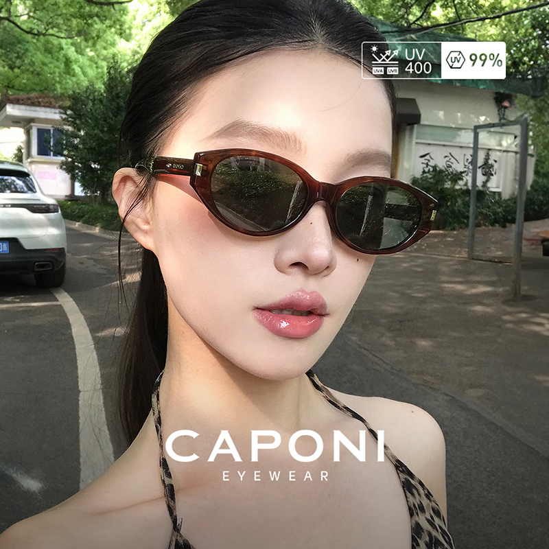 CAPONI复古玳瑁猫眼墨镜女高级感2025新款防晒防紫外线偏光太阳镜
