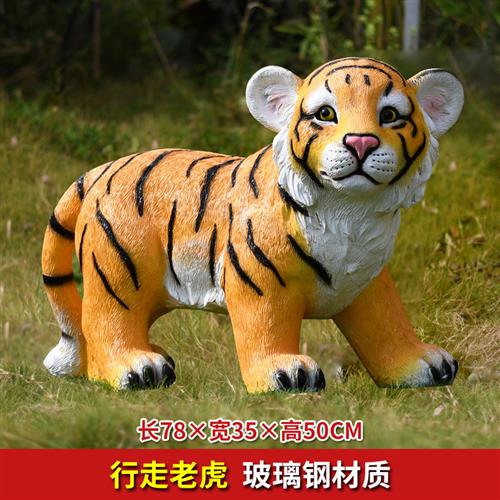 户外大型仿真老虎动物雕塑园林花园玻璃钢摆件店铺动物园草坪装饰