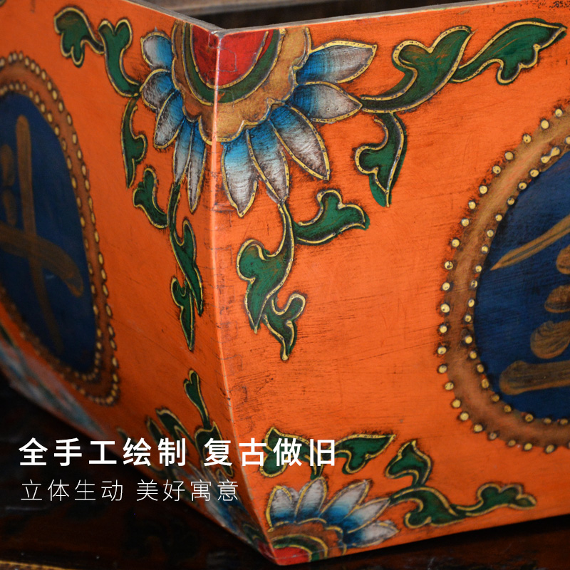 招财日进斗金实木米斗升家用仿复古做旧老式物件开业礼品装饰摆件