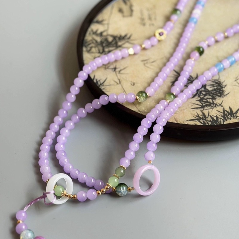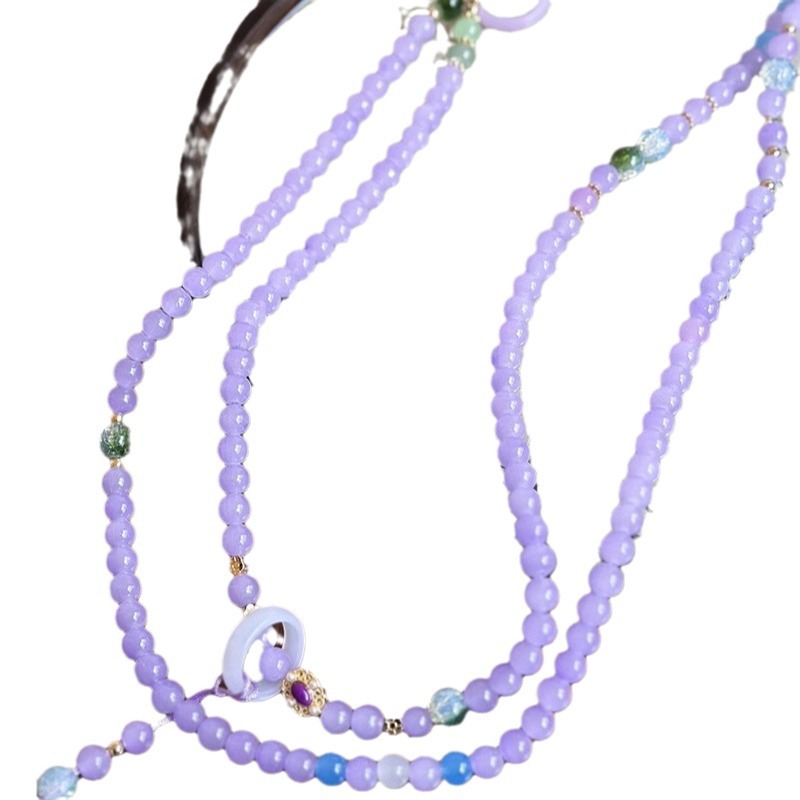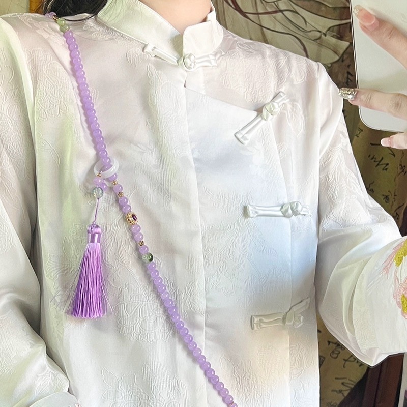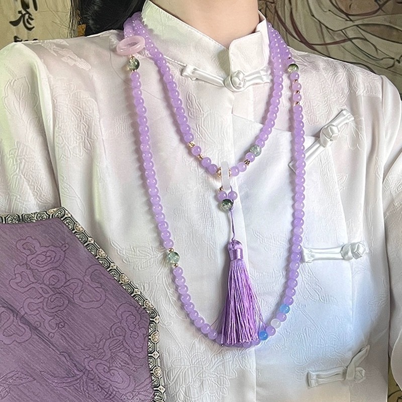 新中式紫色佛珠斜跨链女国风汉服旗袍吊坠装饰叠戴项链挂件高级感