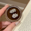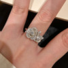S925纯银中古拉丝玫瑰点钻戒指女轻奢高级感冷淡风开口可调节指环