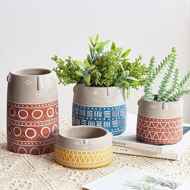 Office Desk Green Plant Decoration Cement Fake Plant Pot Art