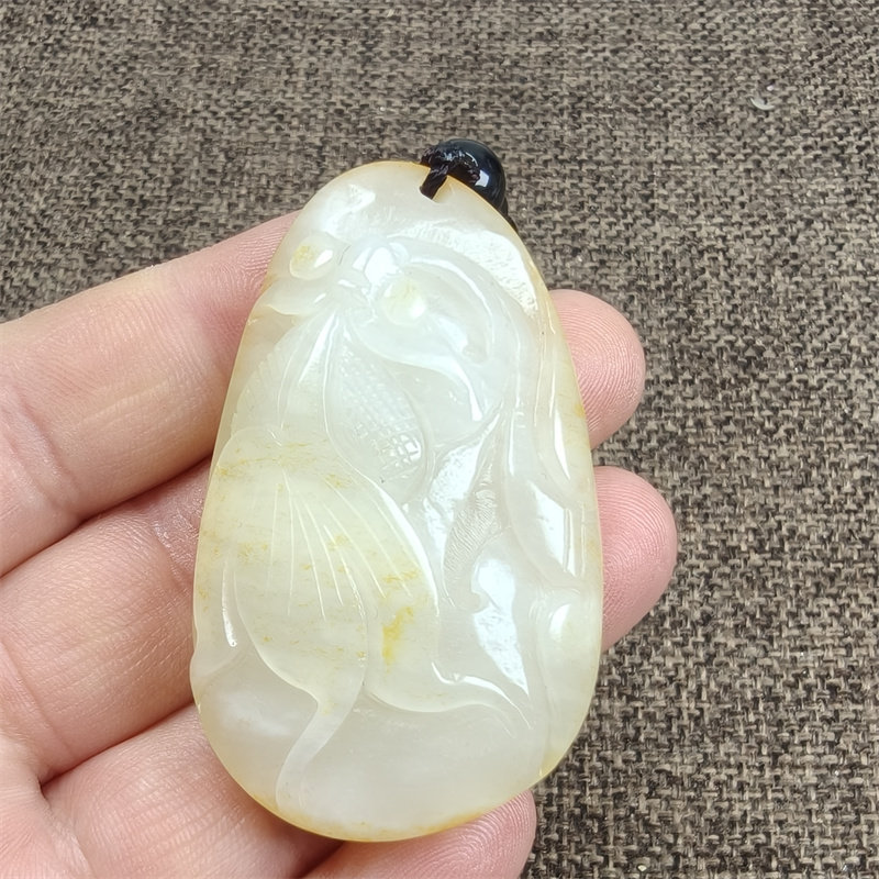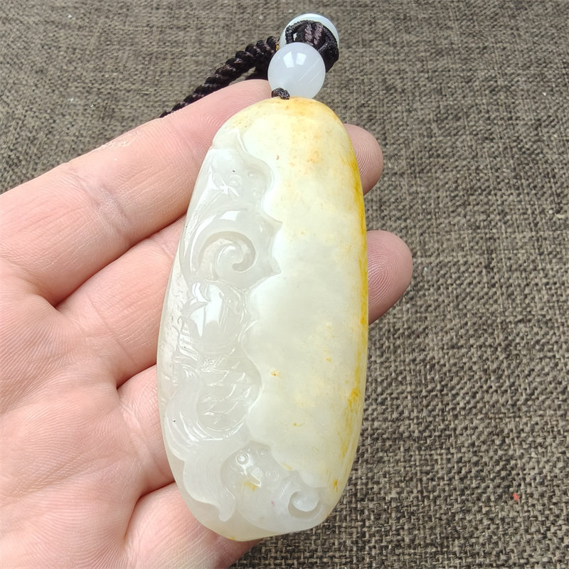 新疆和田玉山料青海玉青白玉原石手工精刻手把件吊坠玉雕笑佛