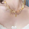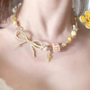 zoozmini多巴胺黄色甜酷蝴蝶结串珠项链女度假拍照锁骨链甜美颈链