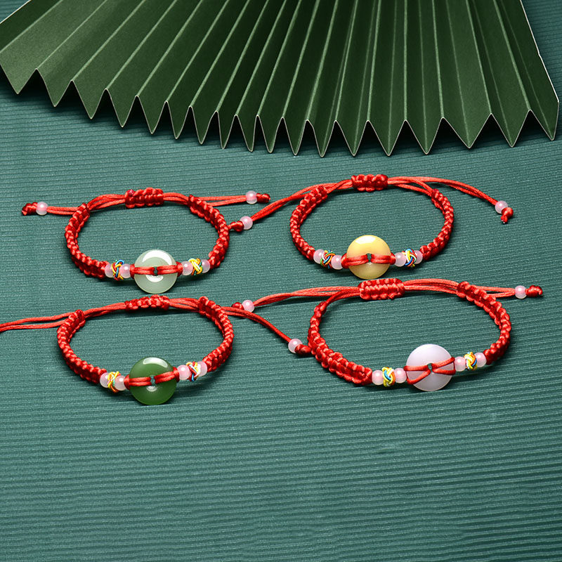 平安扣红绳手链手工编织仿玉石平安扣端午节五彩绳手链批发