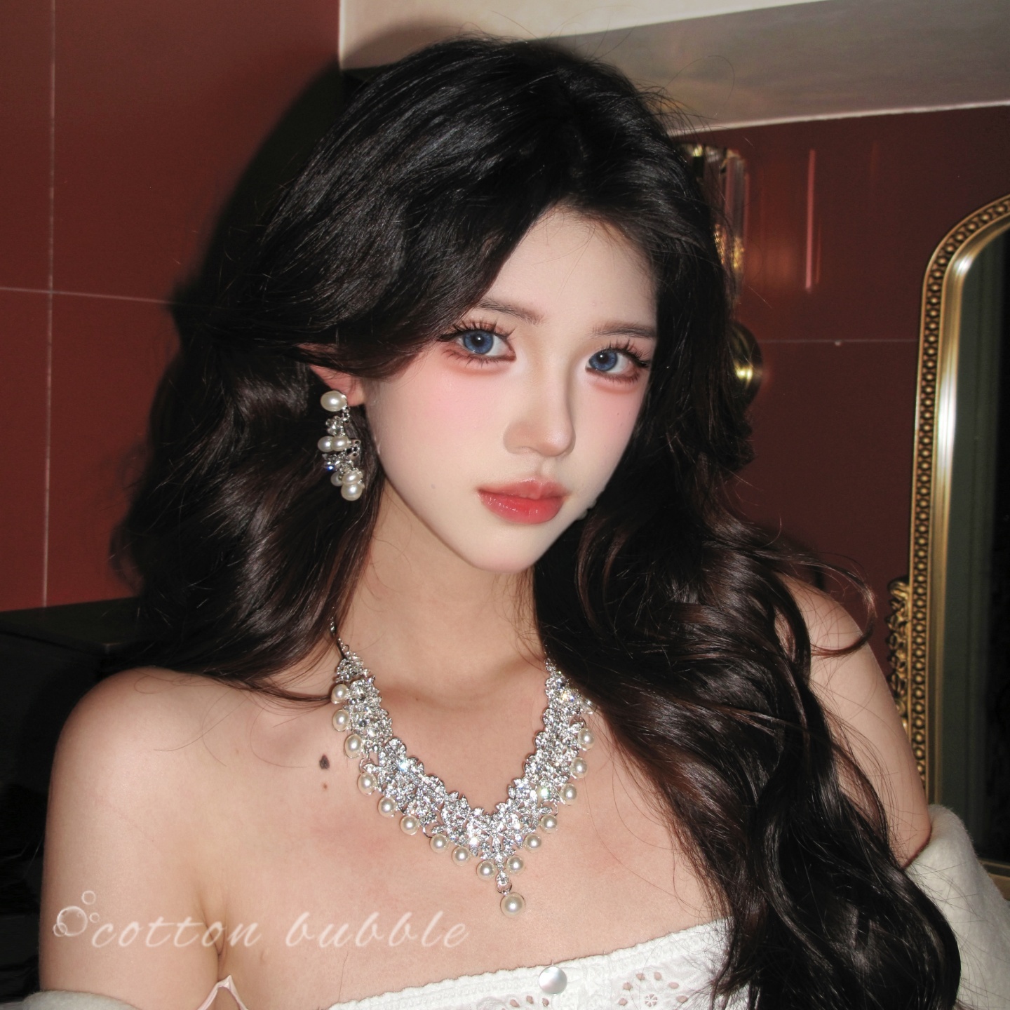 法式镶钻珍珠项链晚礼服夸张配饰耳环套装女高级感生日新娘锁骨链