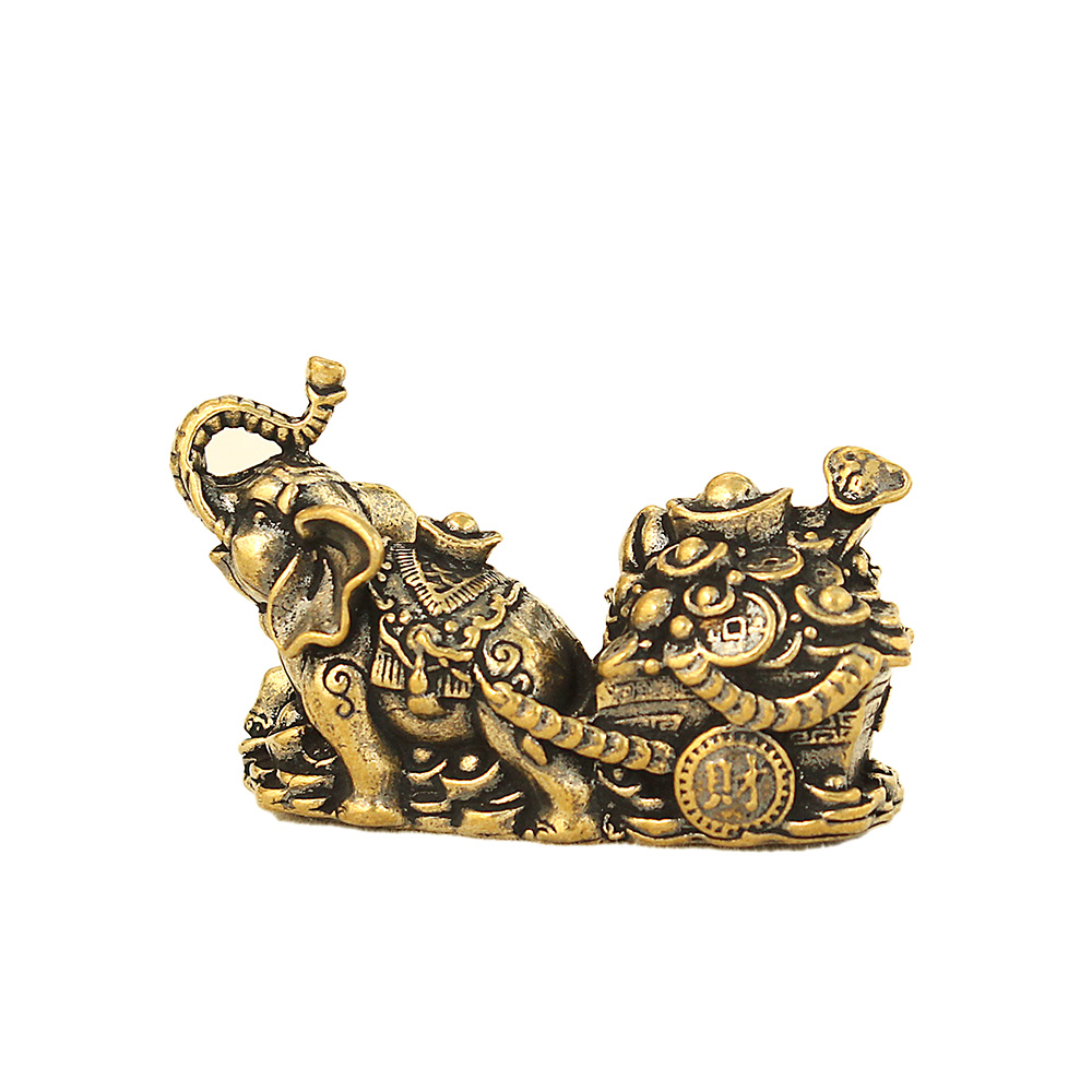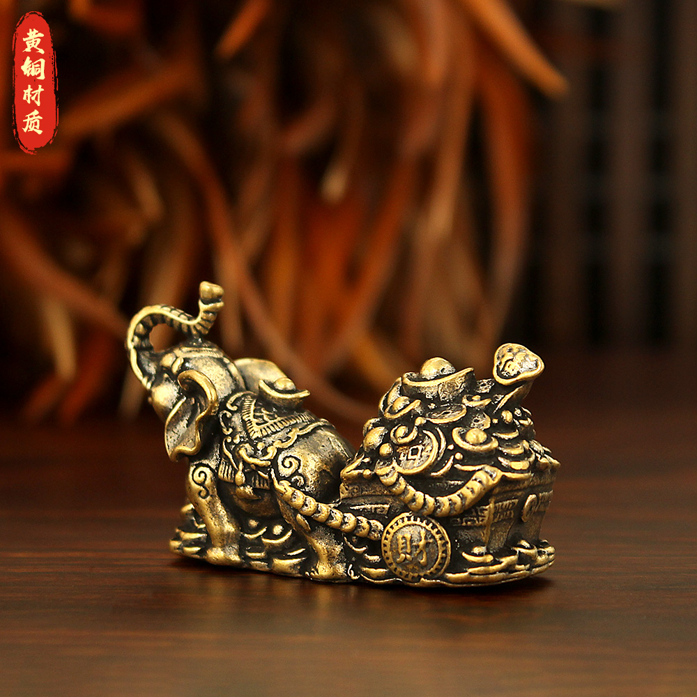 黄铜大象拉车聚宝盆摆件创意复古铜象拉百财家居茶桌桌面装饰礼品