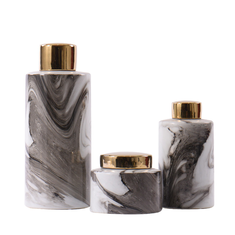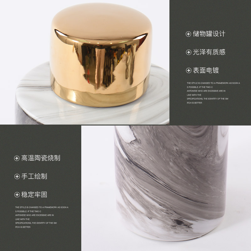 速发轻奢大纹石理玄瓷储物罐摆件客厅陶关电视酒柜样板间软装饰品