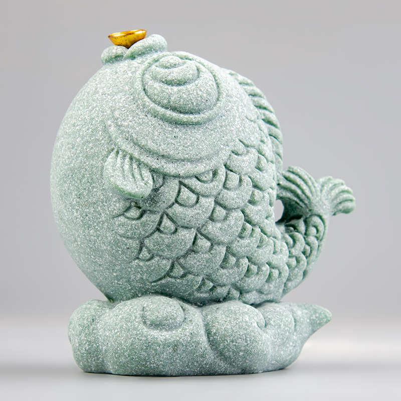 逗兽记青砂石国潮祥云锦鲤装饰办公居家桌面茶宠装饰摆件鱼缸造景
