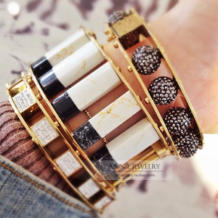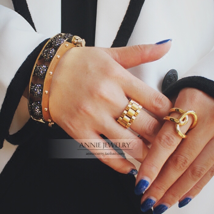 Annie Jewelry重工之作收藏级 质感轻奢黑色钻椭圆形满钻造型手镯