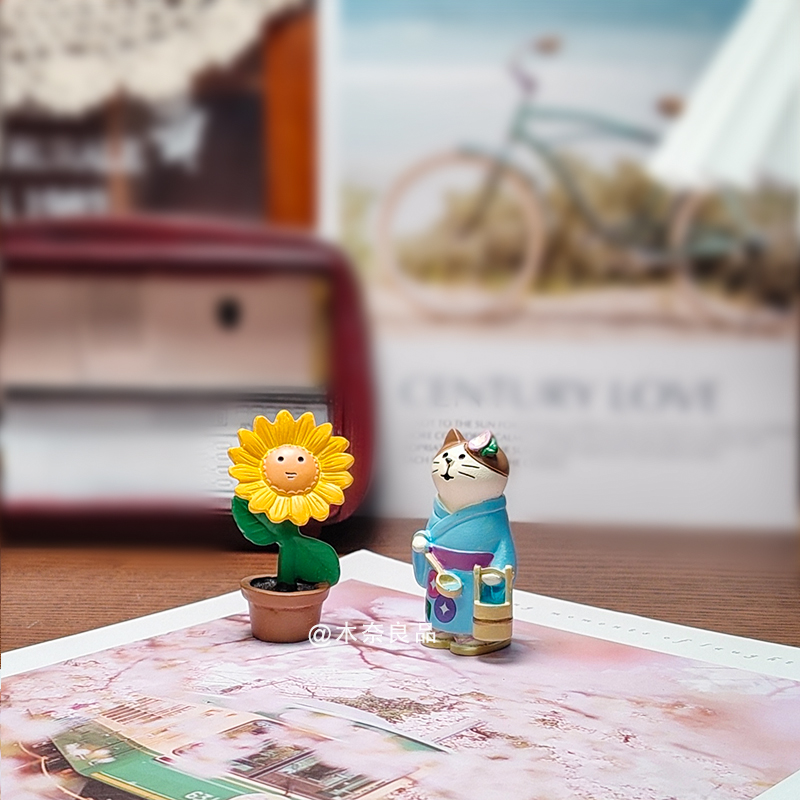 向日葵太阳花摆件猫咪浇水场景微景观仿真模型可爱猫咪田园风桌面