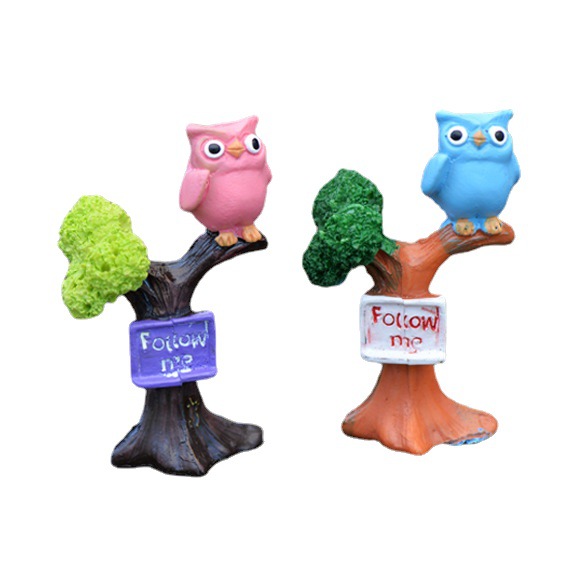 微景观摆件 仿真枯树枝 树叉猫头鹰指路牌 盆景装饰DIY多肉小摆件