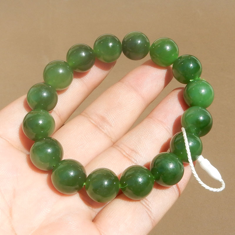 珍藏级俄罗斯老坑料细腻油润辣阳绿碧玉13mm手链X