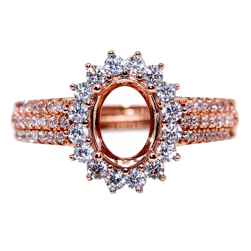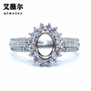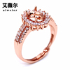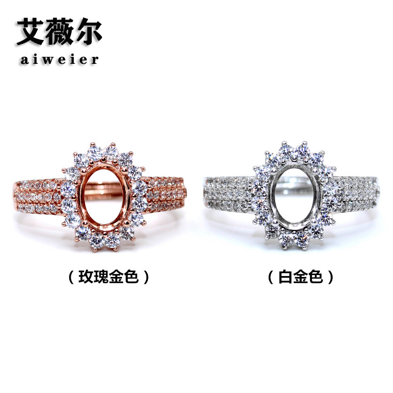 新款戴妃925纯银戒指空托 来石镶嵌代宝石镶嵌戒托5*7-6*8-7*9mm