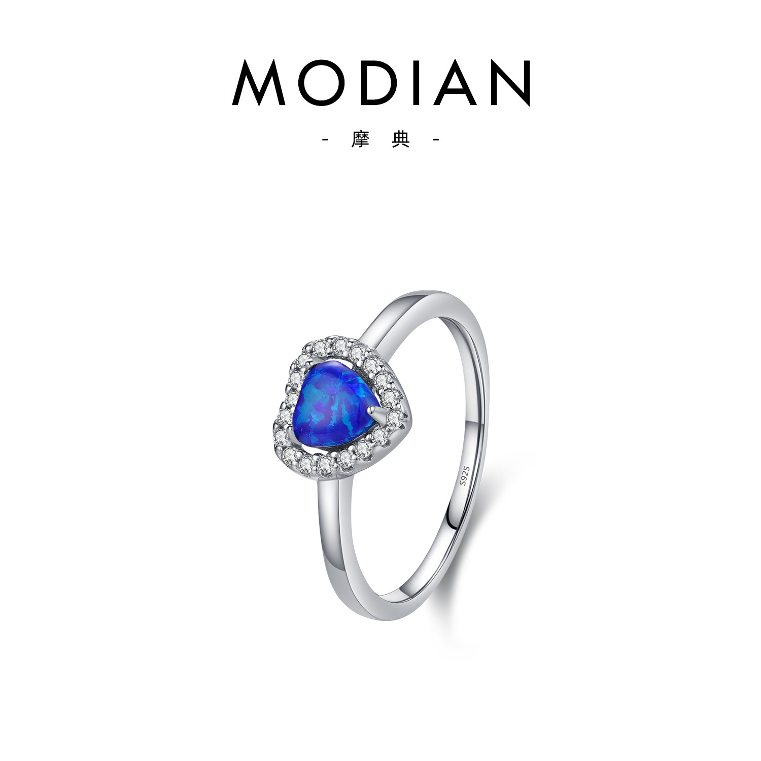 MODIAN摩典S925纯银心形轻奢合成澳宝戒指女高级感甜美爱心指环