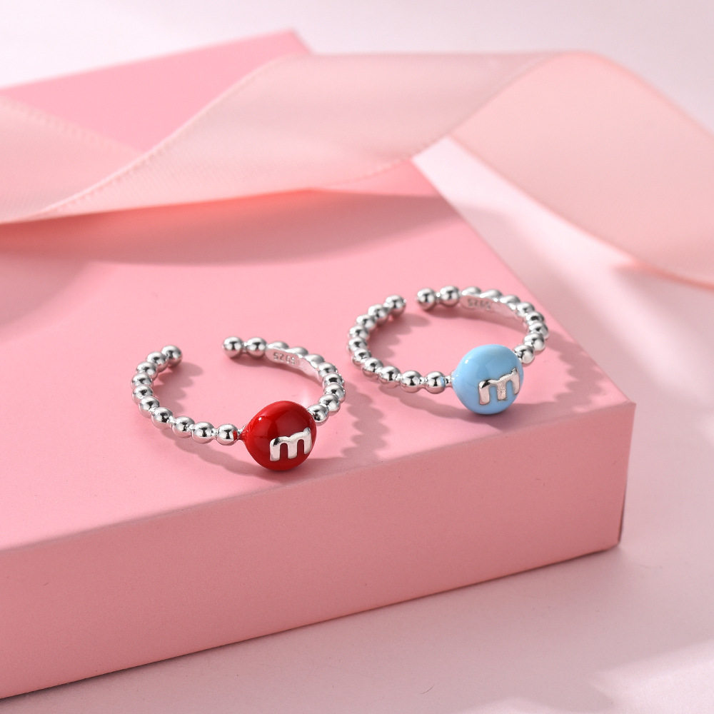 妻子的浪漫旅行戚薇同款戒指彩色m豆珐琅字母M豆女生in食指戒潮