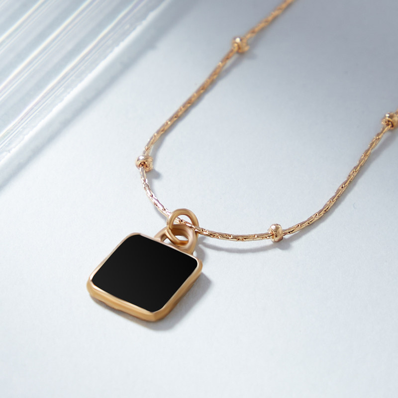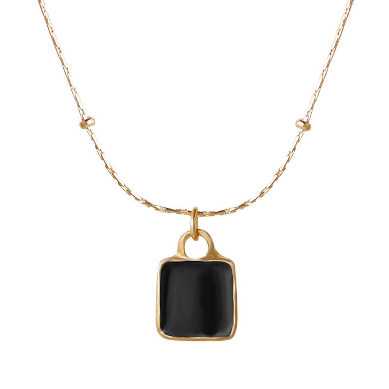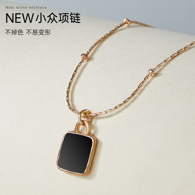 爆款黑色几何方块项链女轻奢日常小众高级感设计锁骨链网红款项链