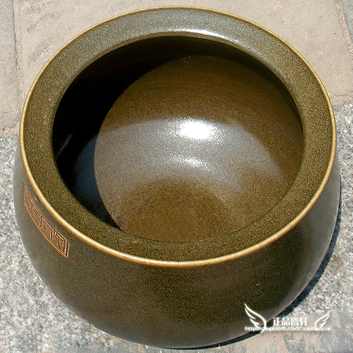 景德镇陶瓷器仿古茶叶末釉聚宝盆睡莲荷花鱼缸玄关摆件小鱼盆中式