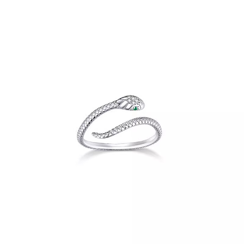 新品时尚韩版百搭ins风小众闪钻灵蛇小蛇戒指开口可调节