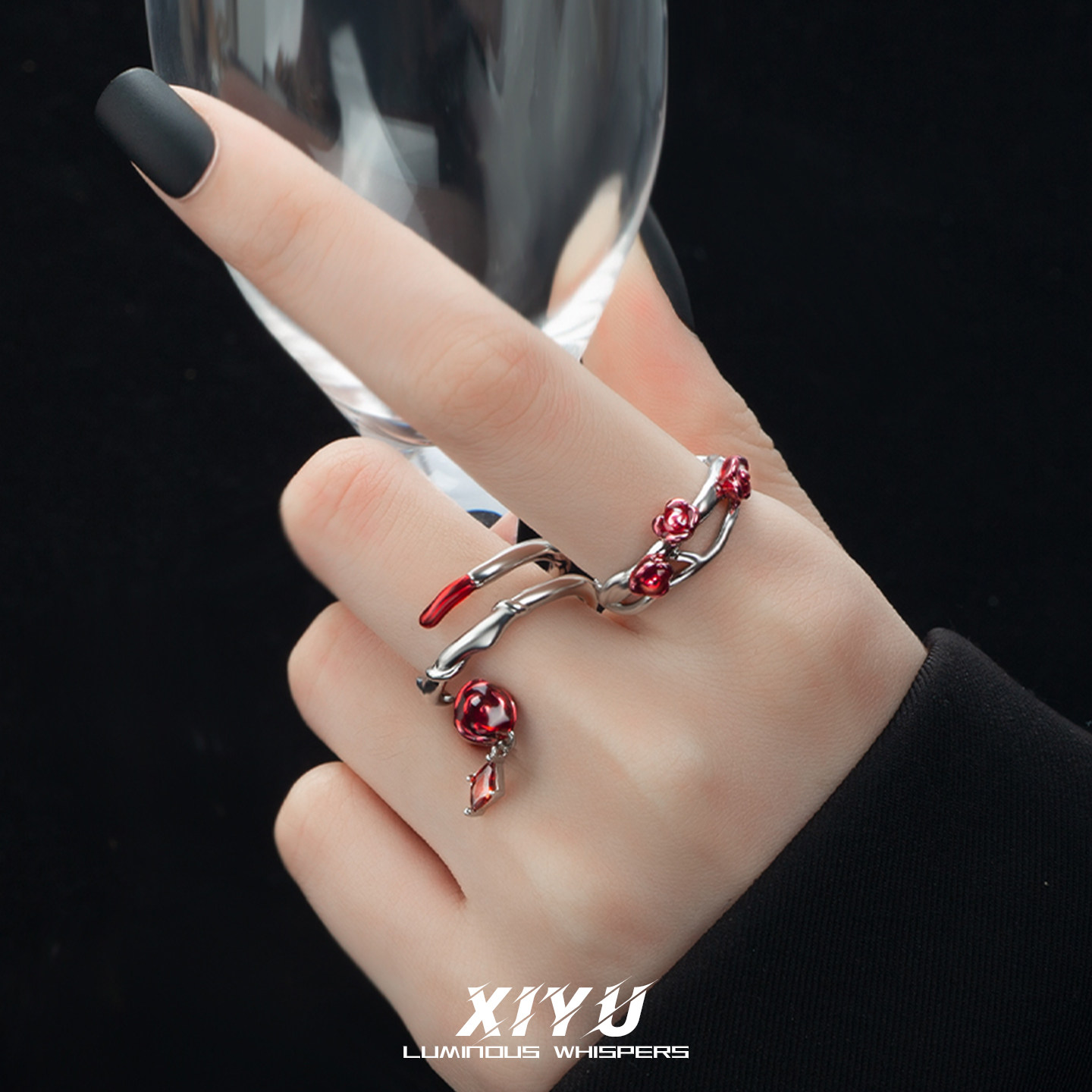 小众设计戒指女轻奢高级感原创玫瑰花个性独特情侣对戒开口可调节
