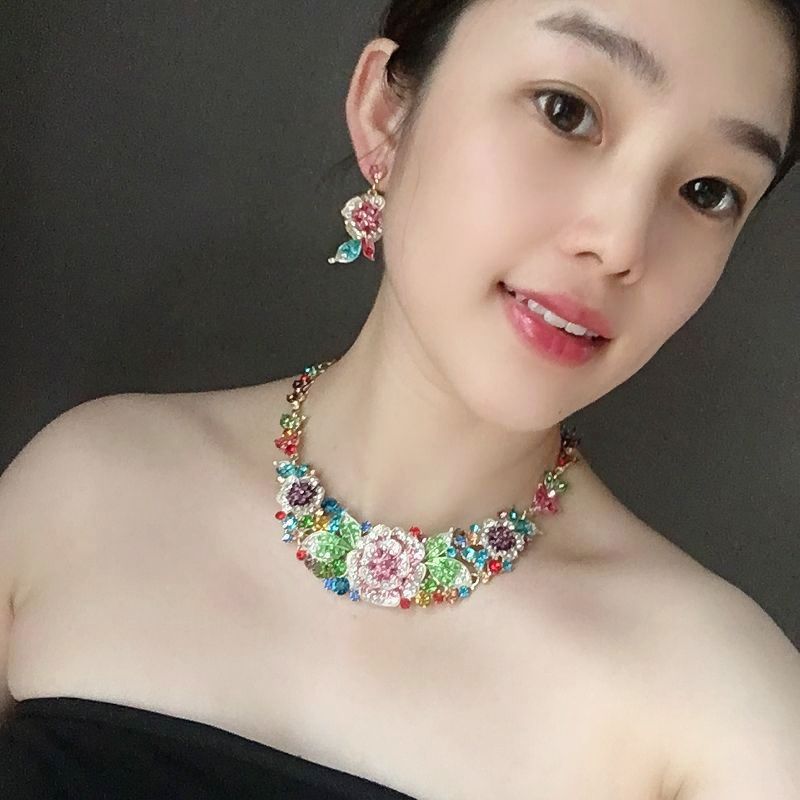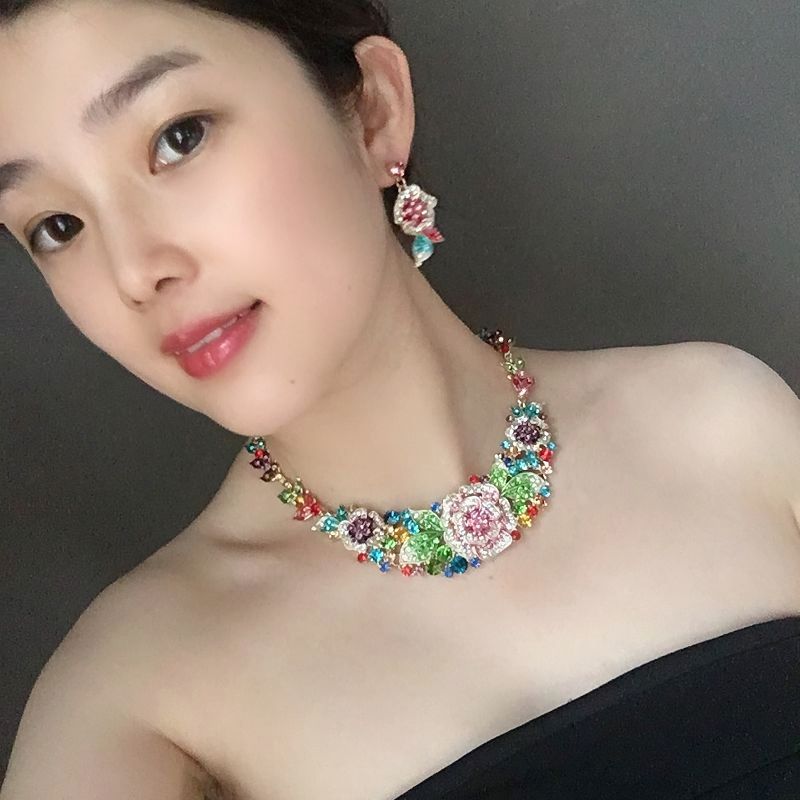 新款欧美流行风彩色短锁骨项链夸张时尚女礼服衣服高端大牌饰品