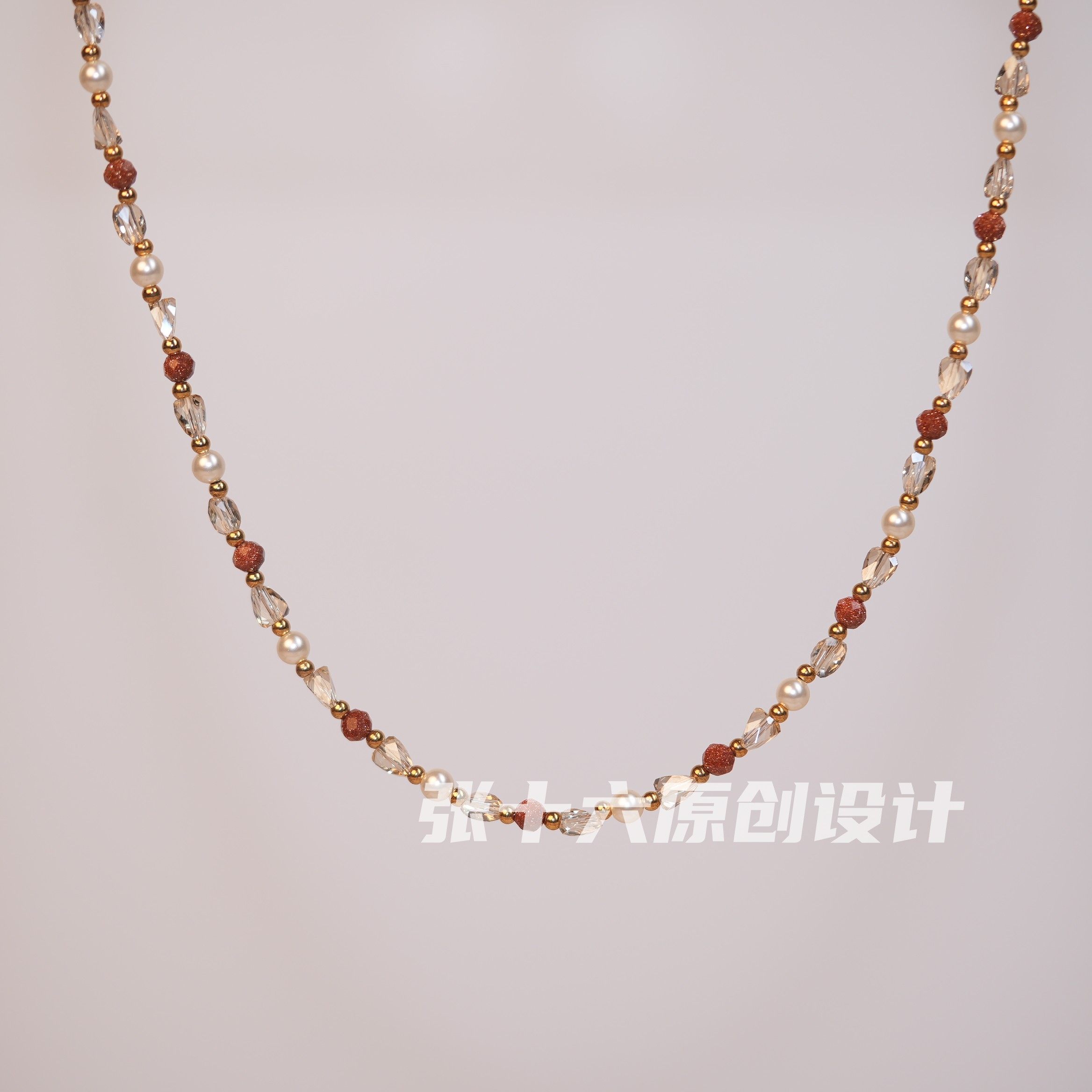 张十六[凝珠项链]钛钢原创设计手工串珠百搭小众彩色轻奢毛衣链女