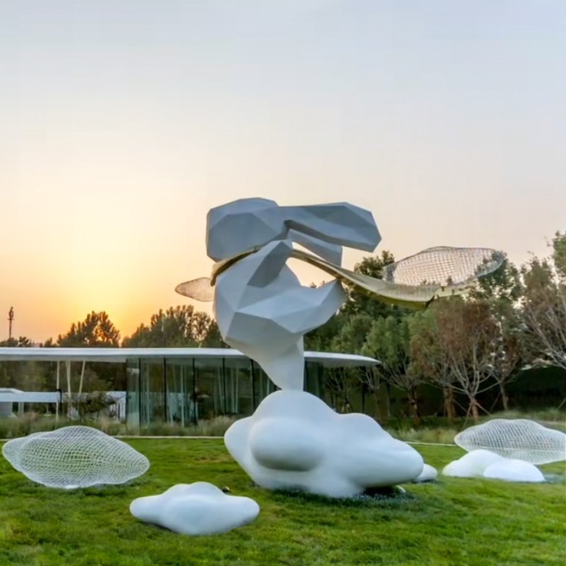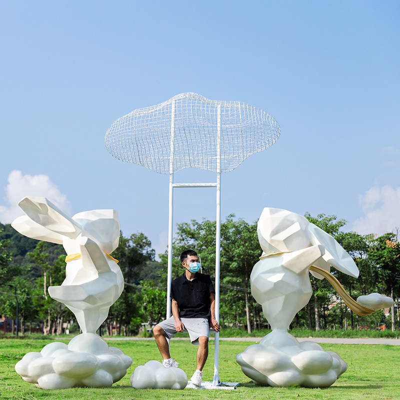 户外网红抽象几何兔子玻璃钢雕塑园林景观不锈钢云朵人物装饰摆件
