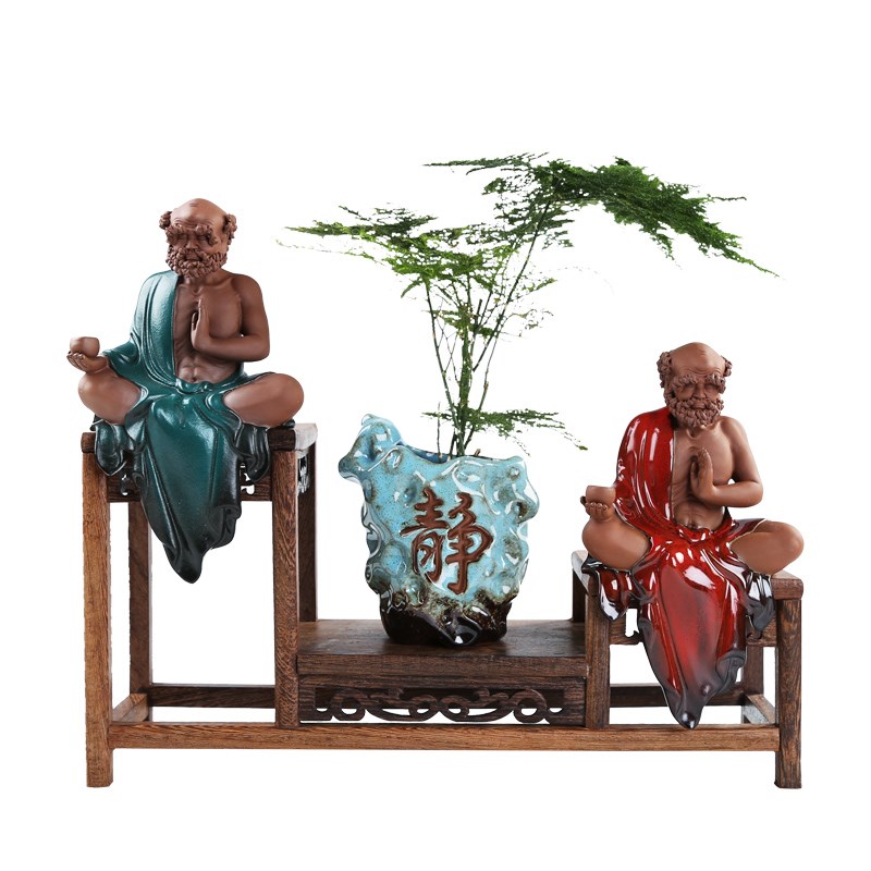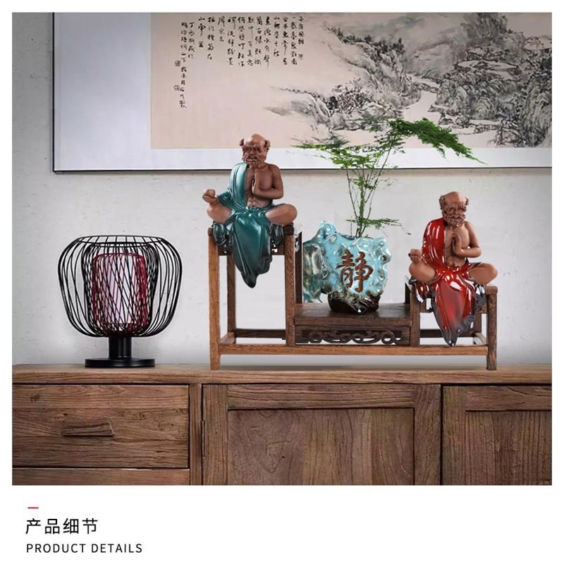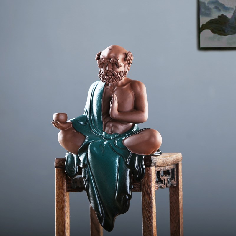 紫砂达摩摆件家居办公室桌面工艺礼品H陶瓷禅意人物客厅博古架装