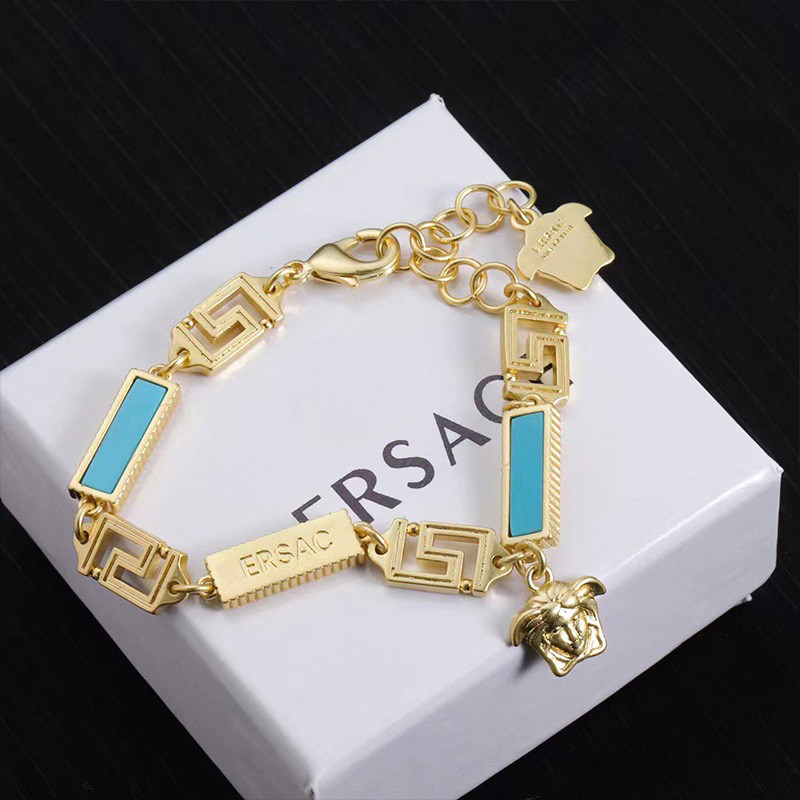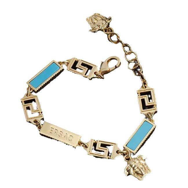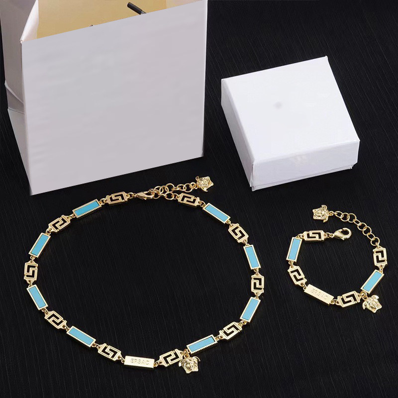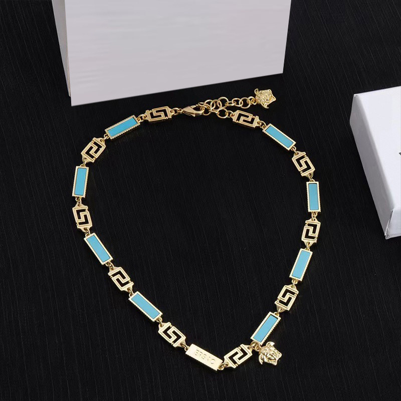 法式复古风蓝色珐琅滴釉回纹项链女欧美小众设计百搭轻奢高级手链