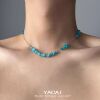 蓝色圆珠小清新项链2025小众设计高级感简约锁骨链水性配饰