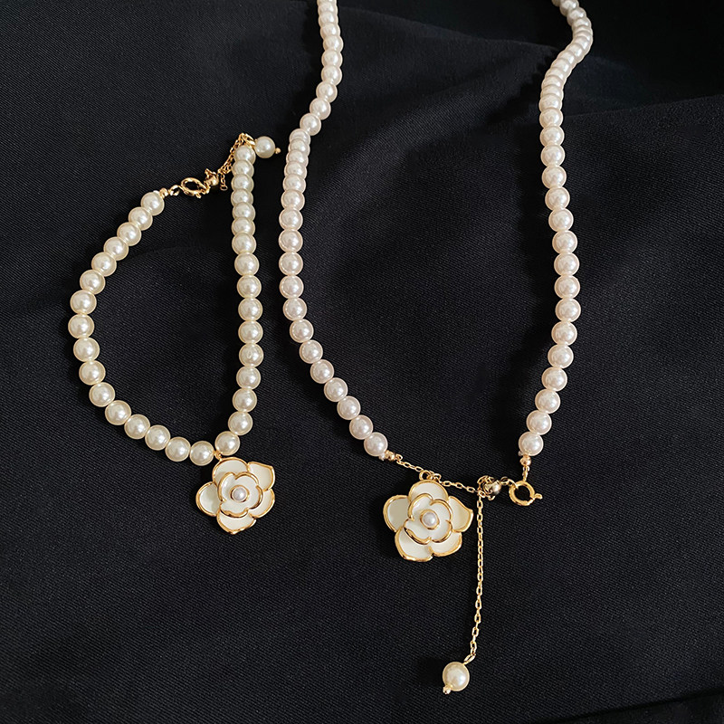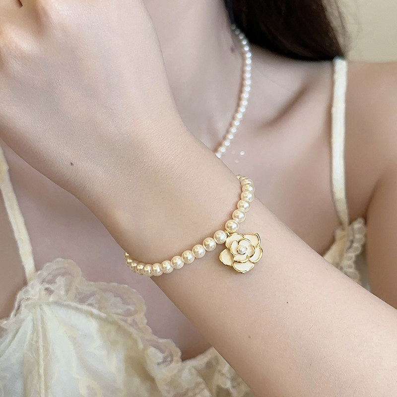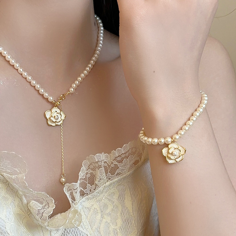 「千金晚宴」正圆强光施家珍珠项链手链女轻奢小众山茶花锁骨颈链