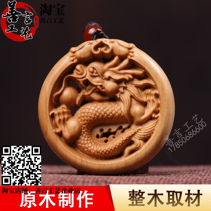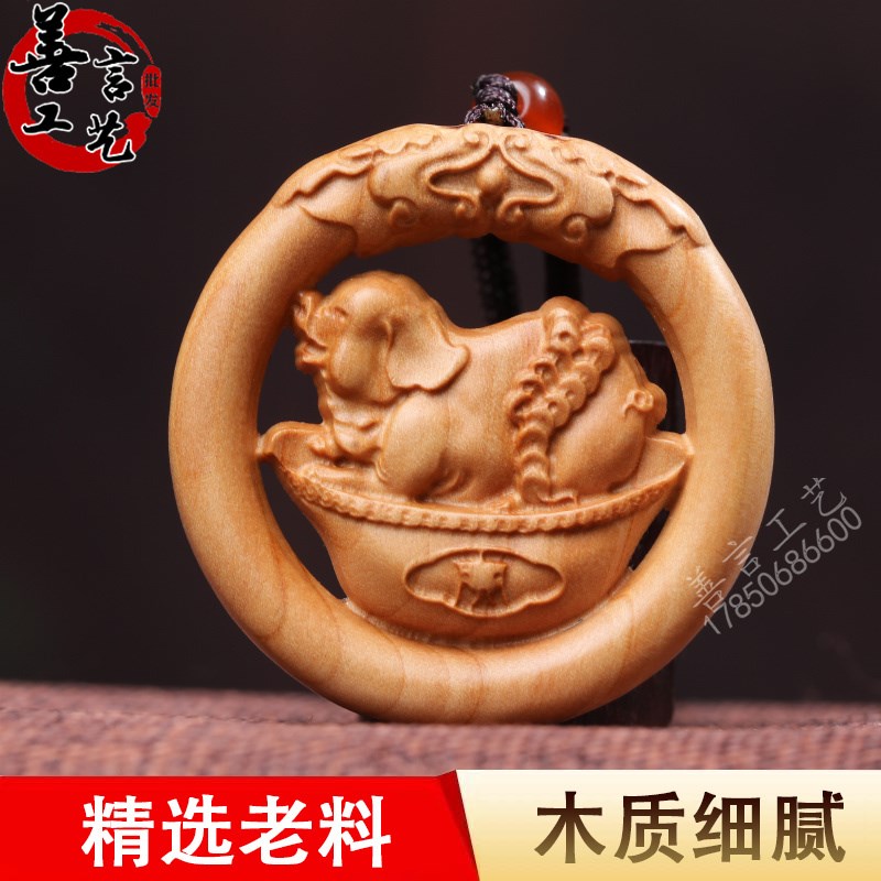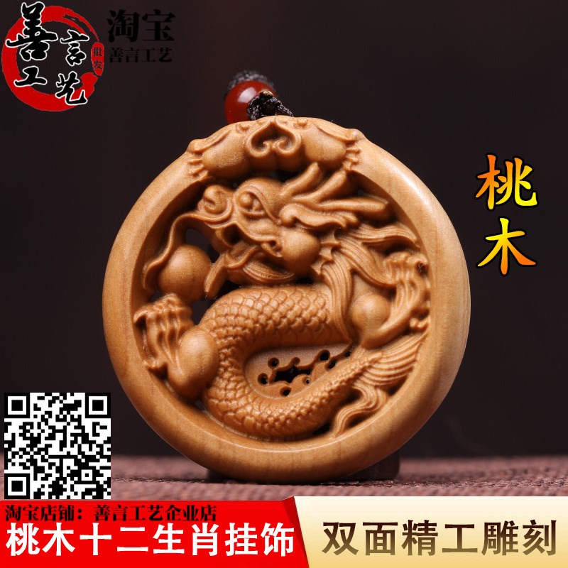 速发桃木十二生肖龙牌吊坠老虎兔子项链属相挂件蛇马羊扣挂饰平安