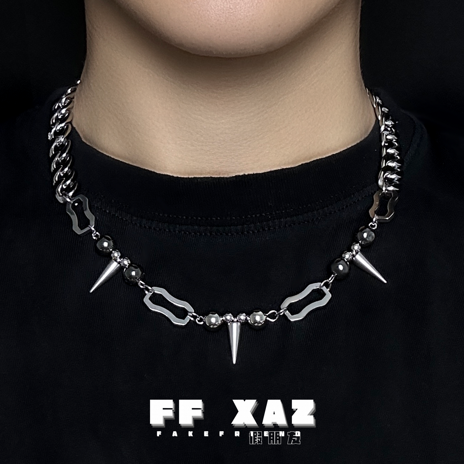 [DRKK]FF假朋友丨小众暗黑钛钢朋克哥特中性项链欧美嘻哈潮流古巴