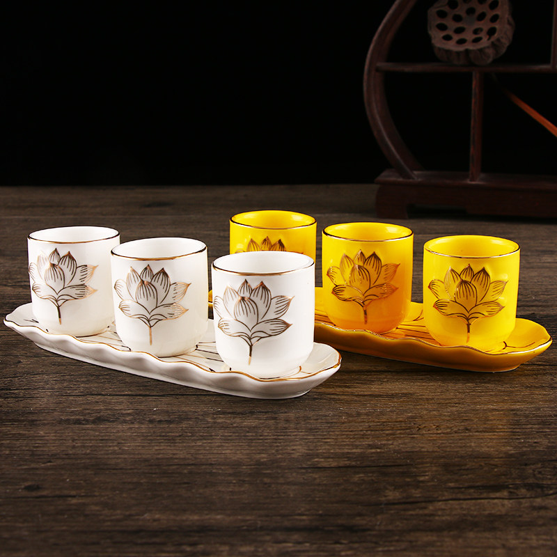 三连供水杯黄色白色三连杯佛堂前供杯圣水杯佛前净水杯贡佛杯子