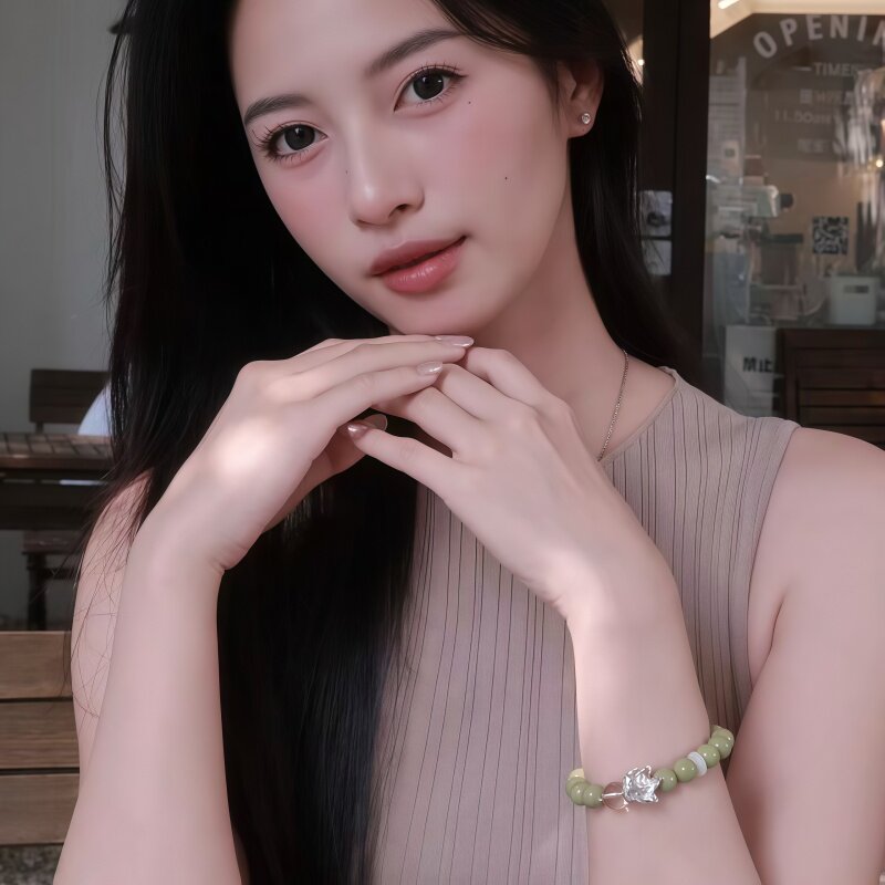 「时系列」豆豆同款日出圆珠手串绿色玛瑙手链女