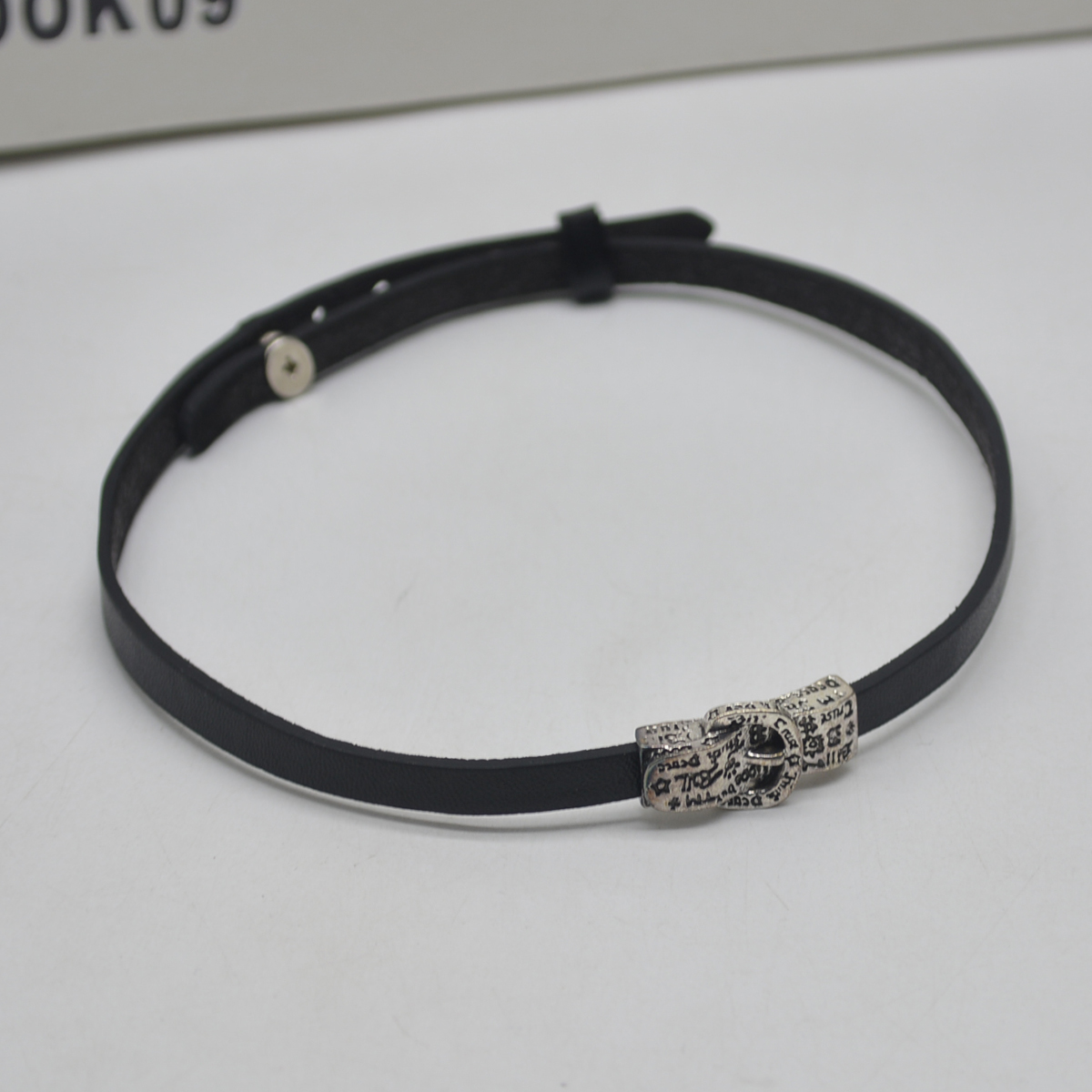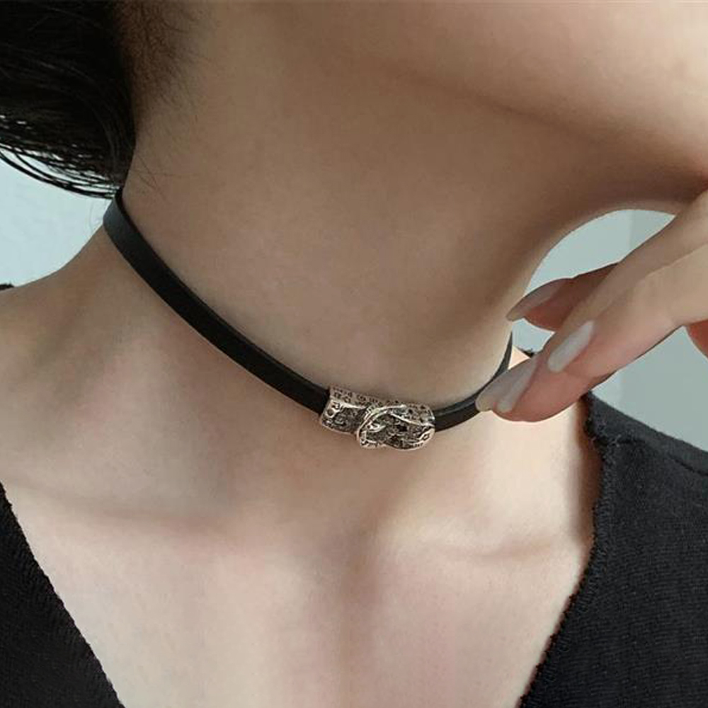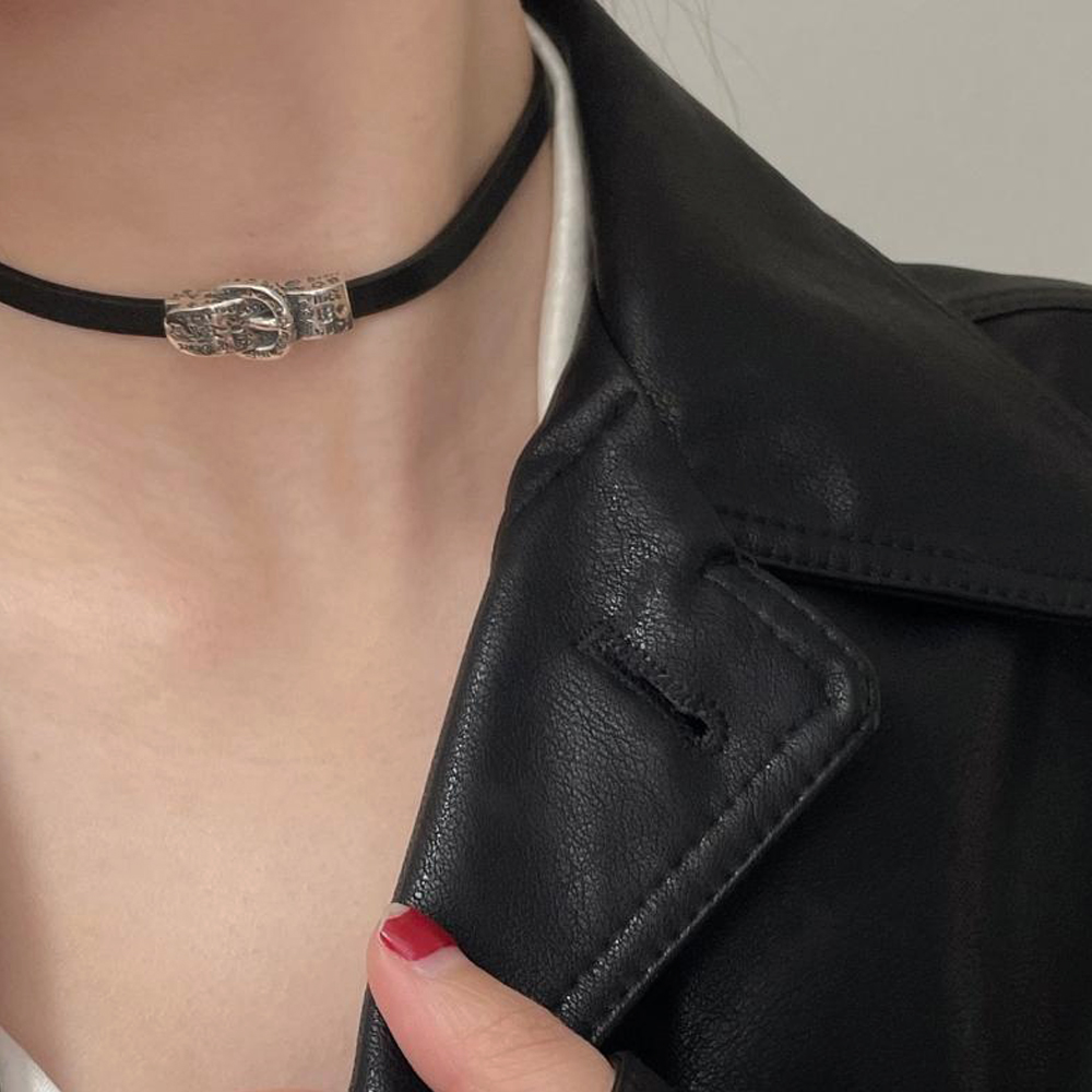 小众极简黑色细皮带扣字母choker颈带日常百搭短款项圈可调颈环女