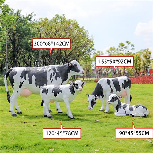 户外农场玻璃钢仿真奶牛雕塑草坪黄水牛西门塔尔安格斯牛模型摆件