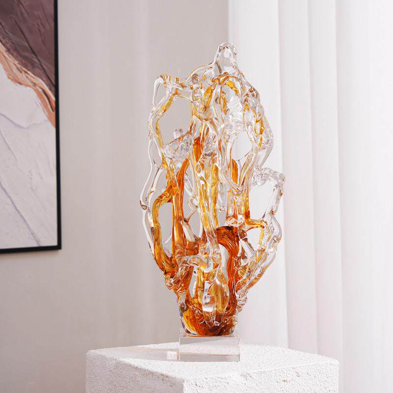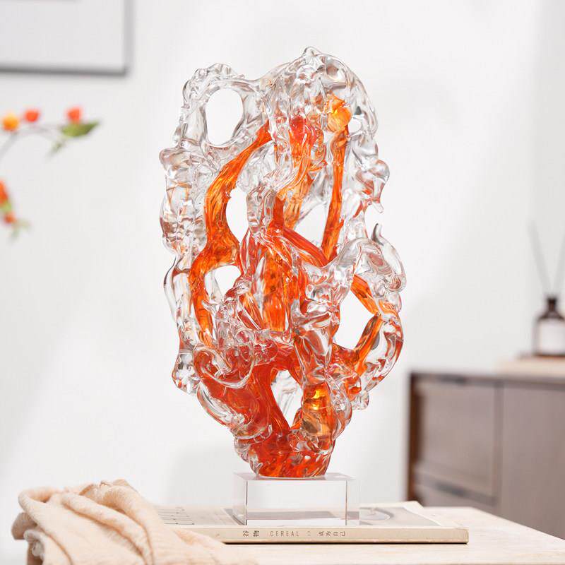 琉璃发财树摆件太湖石现代简约客厅样板间酒店博古架桌面装饰送礼