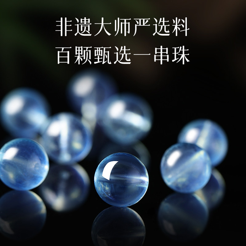 收藏级天然海蓝宝手串男士蓝色水晶手链女款蛇年本命年护身符礼物