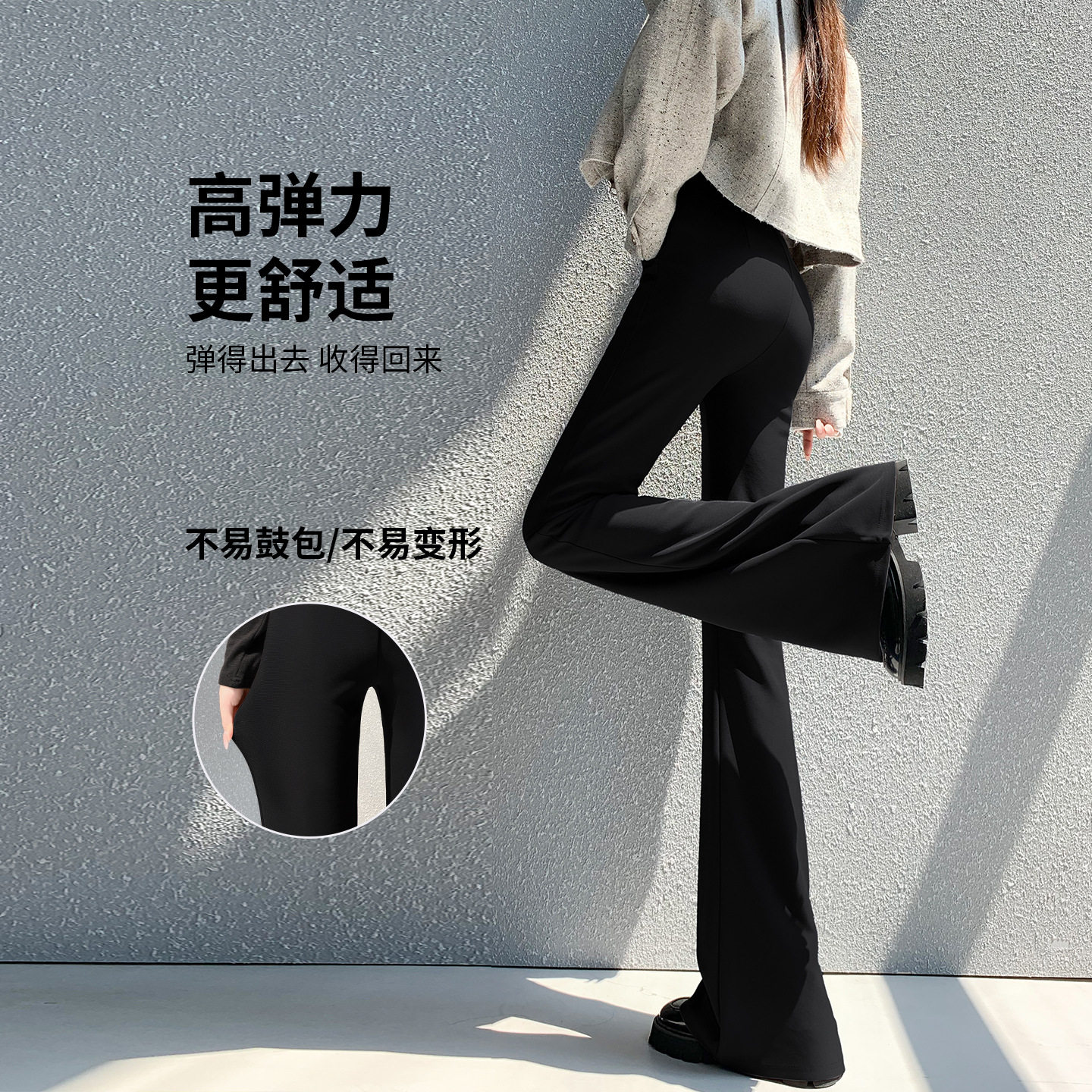 黑色喇叭裤女秋冬季2025新款高腰显瘦马蹄裤小个子西装加绒微喇裤